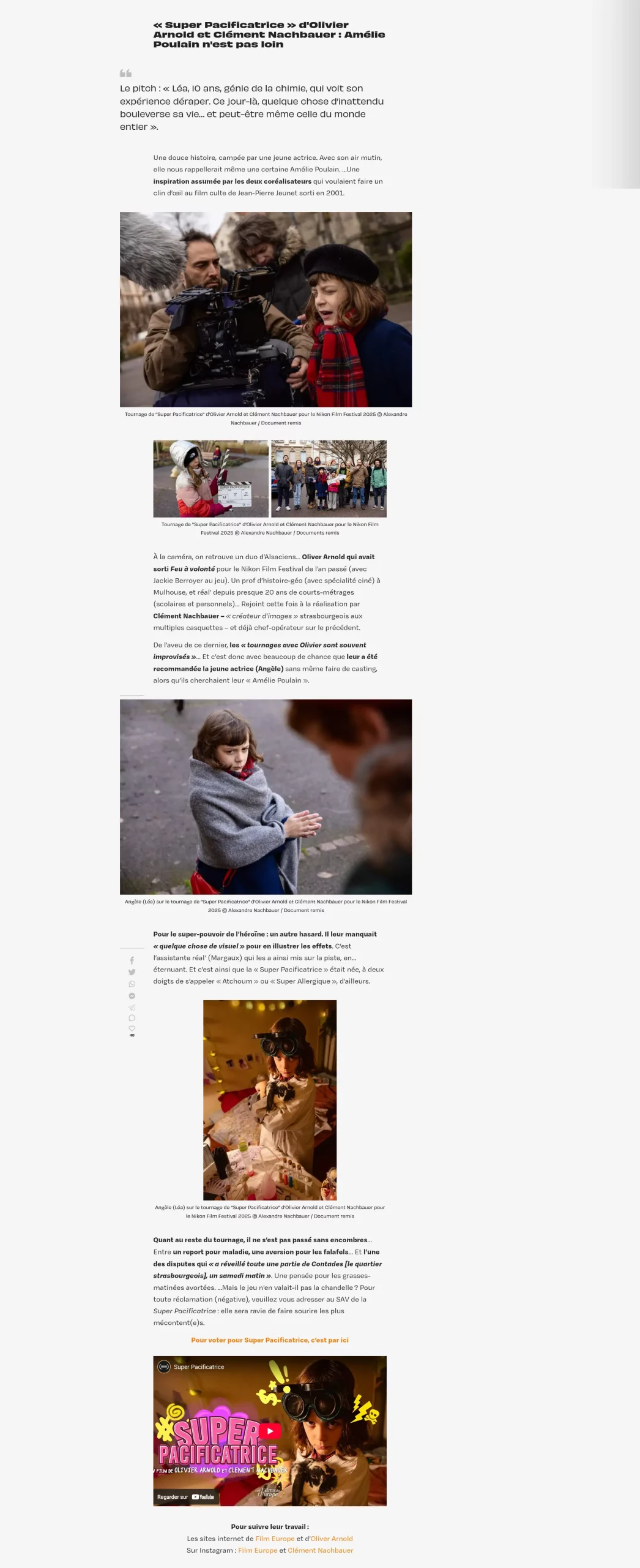 Clément Nachbauer, Cyprien Liaudet, William Gross, Anne-K Lejeal, Sophie Renier, Mona Khamehchinkhiabani, Margaux Hamelin, Clément Arlotti, William Gross, Damien Lemercier, Alexandre Nachbauer, Mehdi Belghiti, Amanda Dard Diz Grana et Les Films de l'Europe.